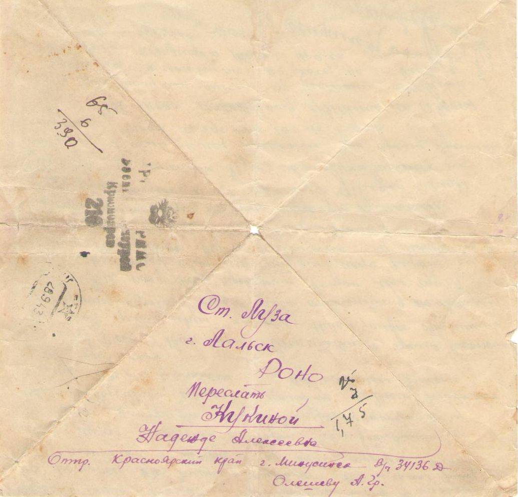 | 5 | Почтовая карточка Олешева А. Г. | 1942 | 1 |