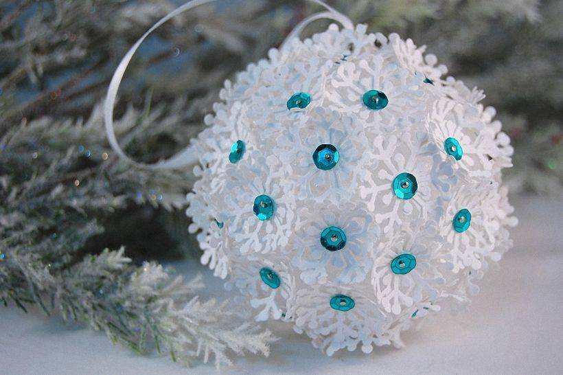 Взять шар из пенопласта и обклеить бусинками, стразами или бисером. Дополнительно можно украсить бантиками и лентами.