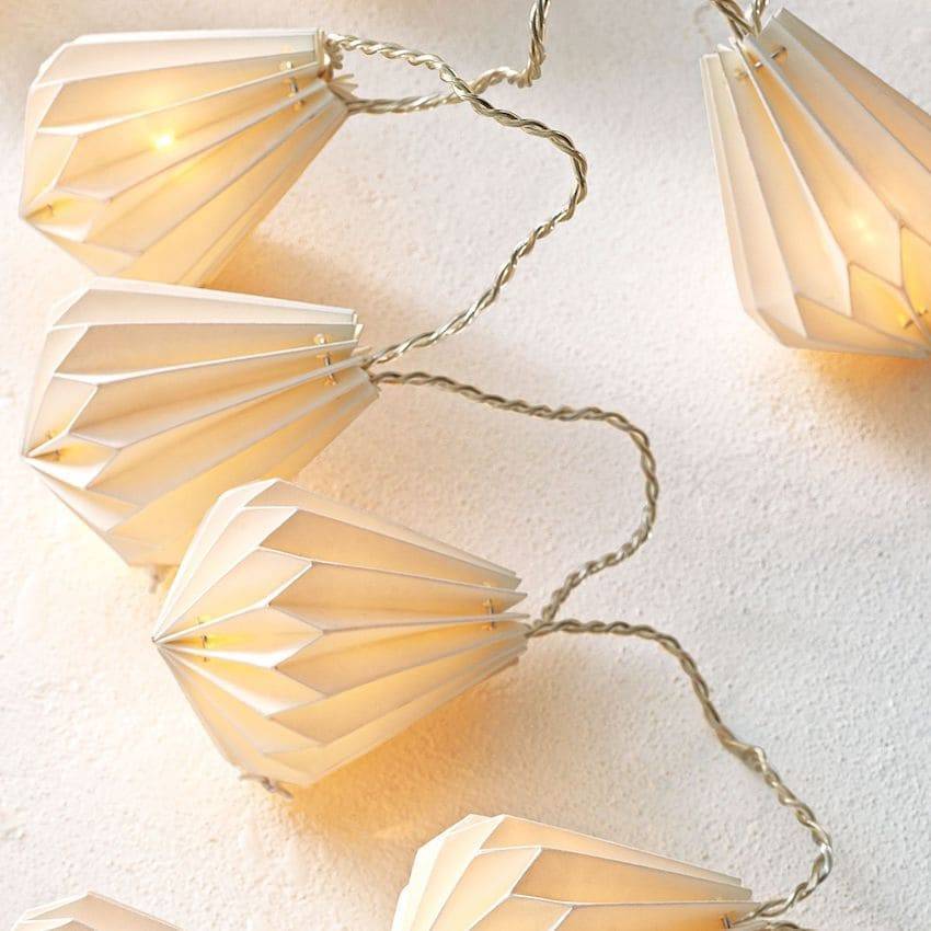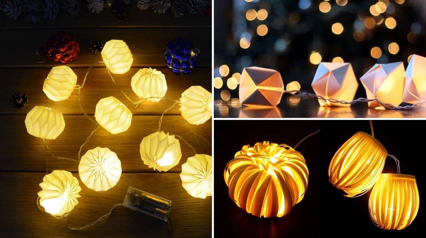 Электрическая гирлянда с объёмными бумажными фонариками поможет создать волшебную атмосферу нового года