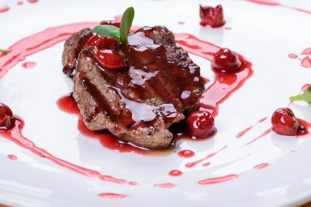Лосятина, оленина, медвежатина – лесной продукт, поэтому готовое блюдо рекомендуется обрамлять соусами, в составе которых также находятся дары леса – грибы, ягоды, травы.