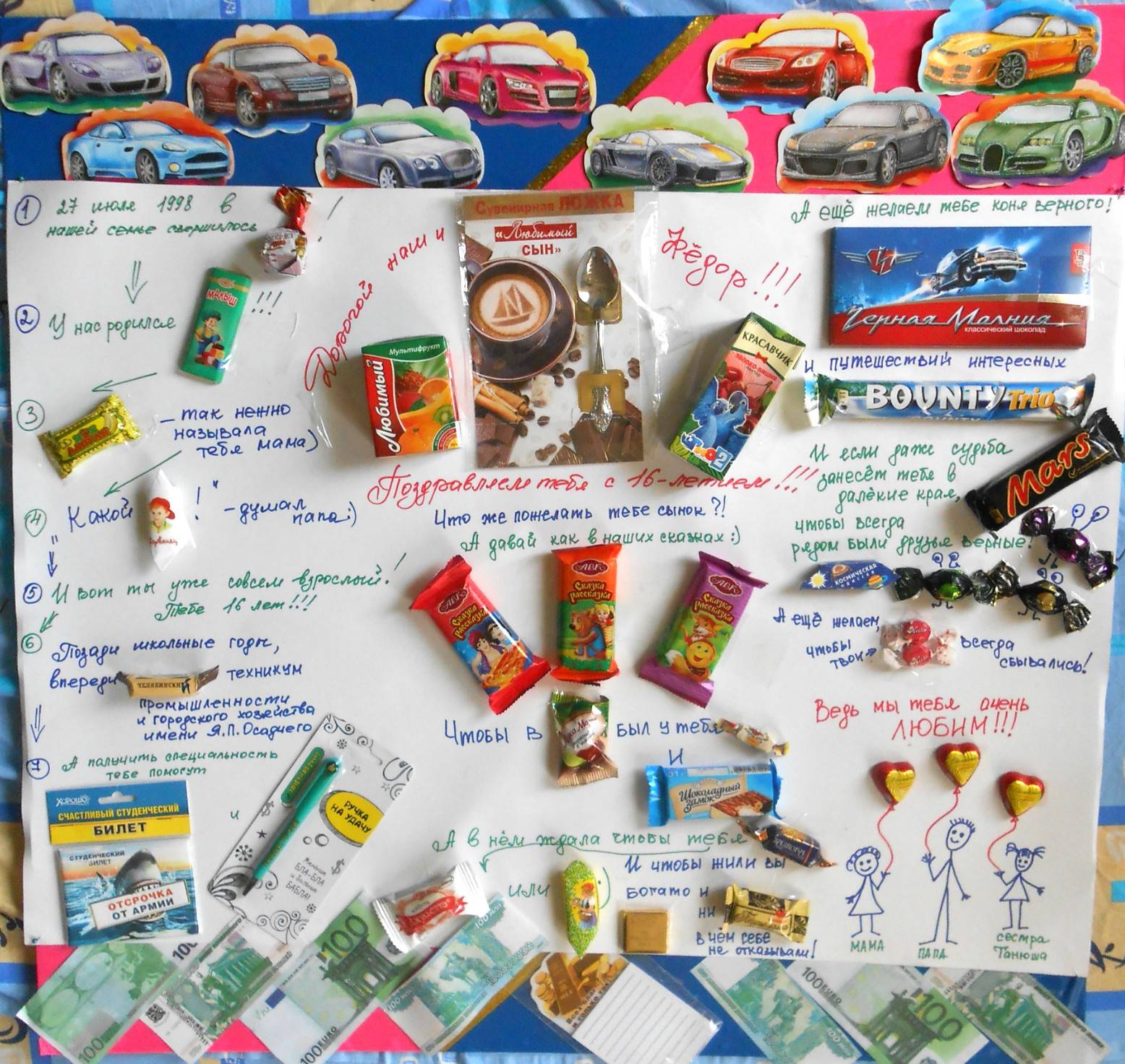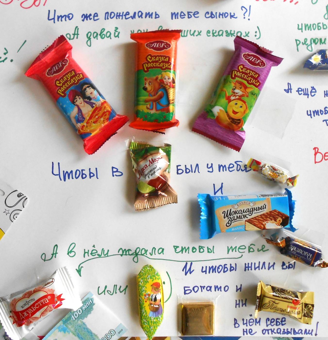 готовая стенгазета из сладостей для ребенка в день его рождения, пример 7