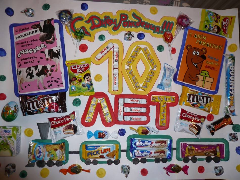 Плакат, стенгазета на День рождения ребенку из сладостей: идеи, фото, шаблоны