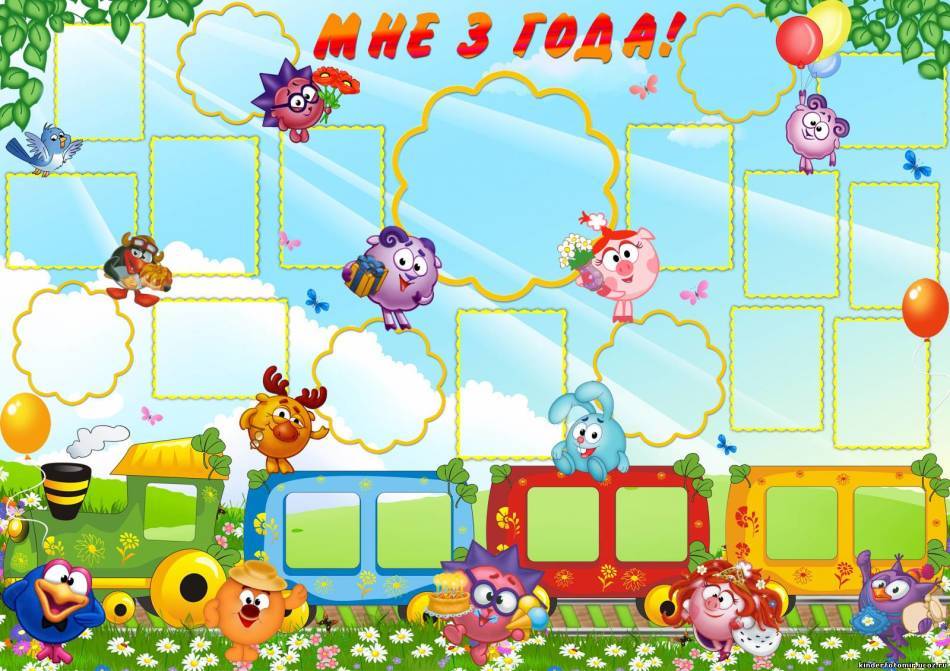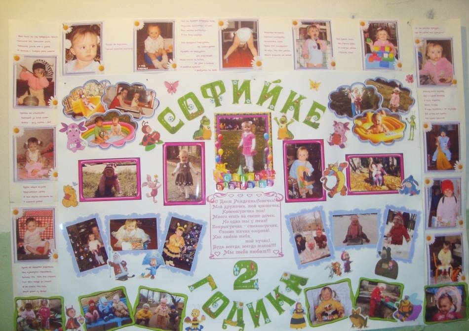 Плакат для ребенка в этом возрасте должен быть обязательно ярким, на нем должны быть счастливые фото малыша и близких людей. На основу так же можно прикрепить маленькие сюрпризы: