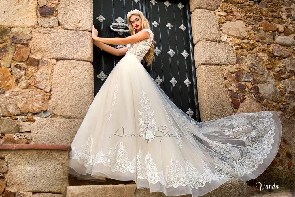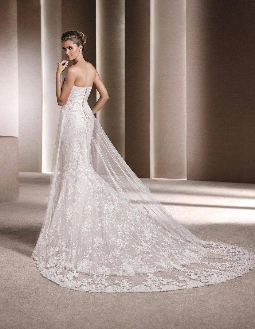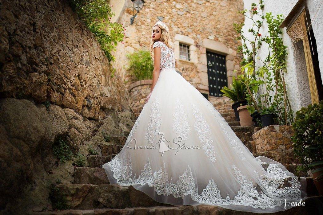 Свадебное платье с кружевным шлейфом