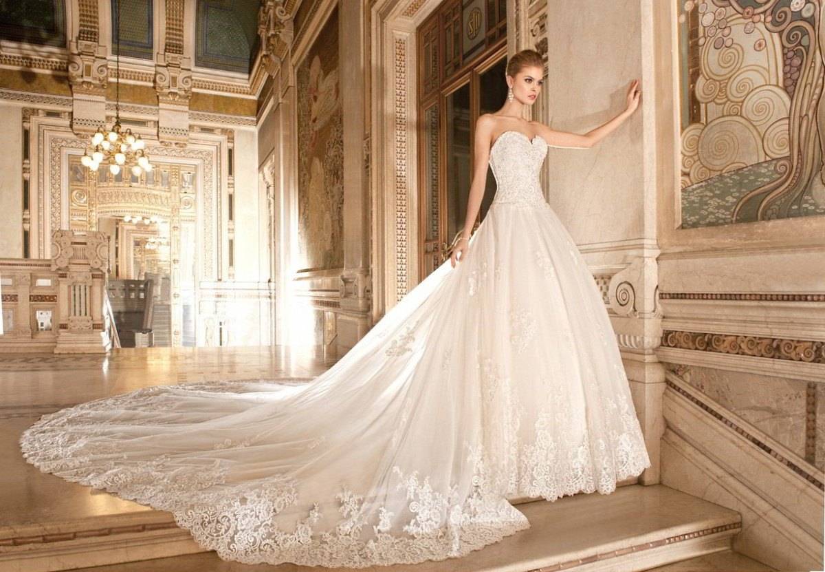 Пышное платье, да еще и со шлейфом — мечта каждой девушки. Все модели красивые и необыкновенные. Особую загадочность, женственность и невинность придают платью рукава из кружева.