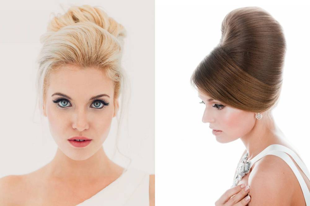 Существует несколько вариантов «высокого полета», но все они неизменно объединены высоким пышным начесом на макушке. В стиляжном варианте для начеса могут быть использованы как все волосы, так и только верхняя часть. Черты подбора добавят своей индивидуальности каждой.