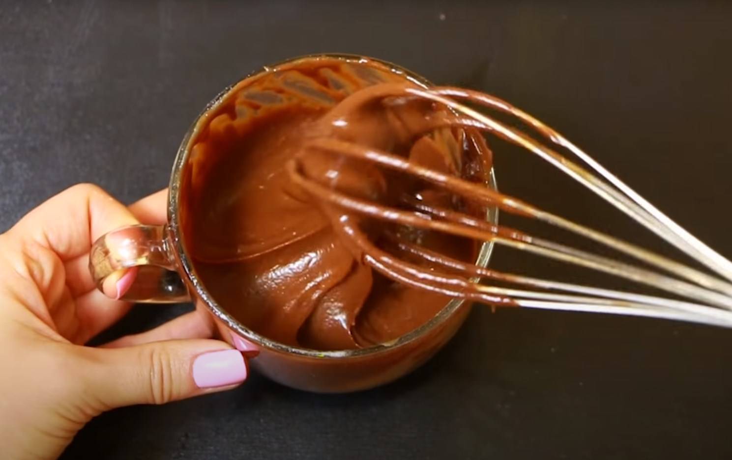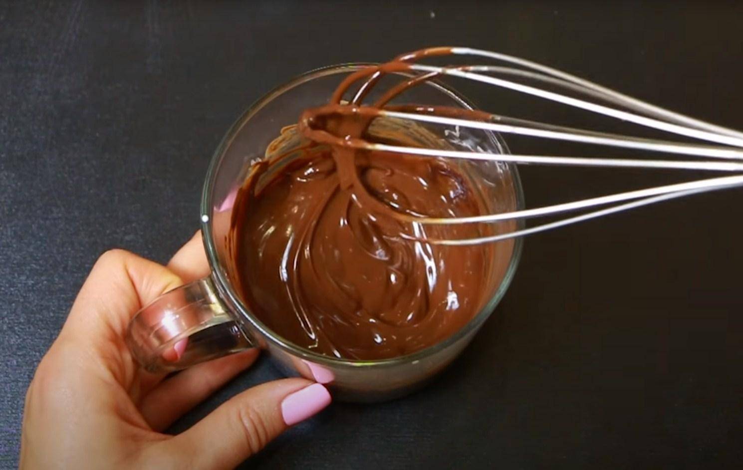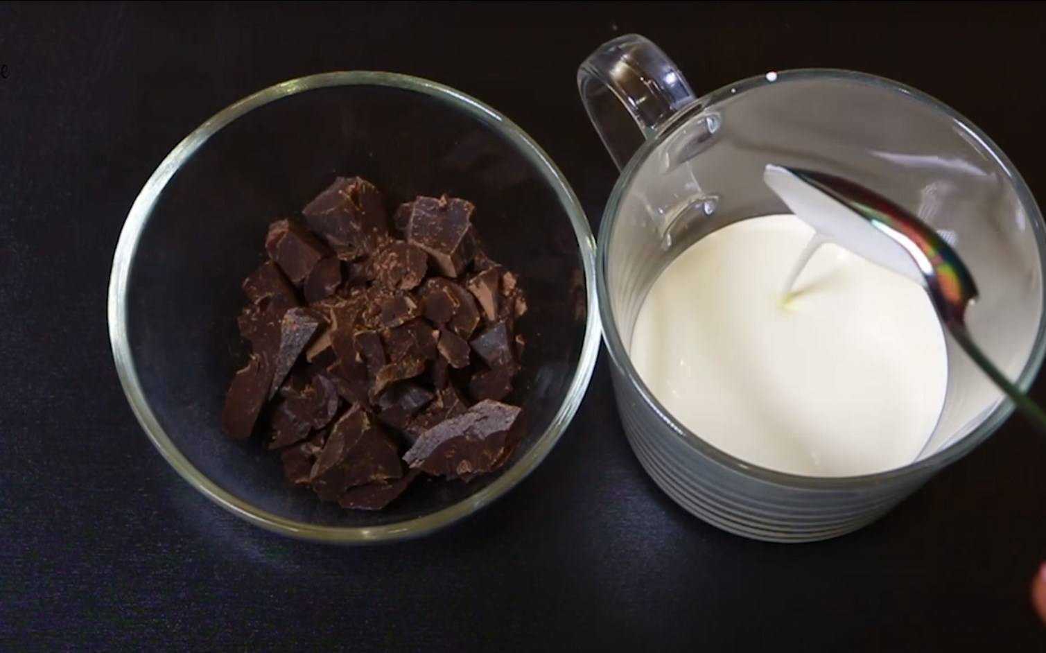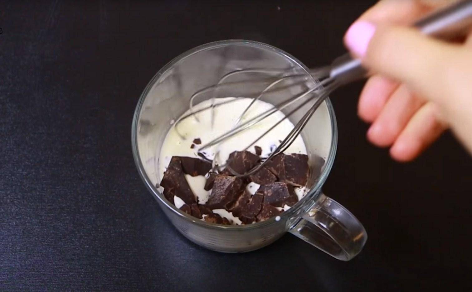 В горячие сливки добавляем измельченный шоколад и тщательно перемешиваем до получения однородной массы.