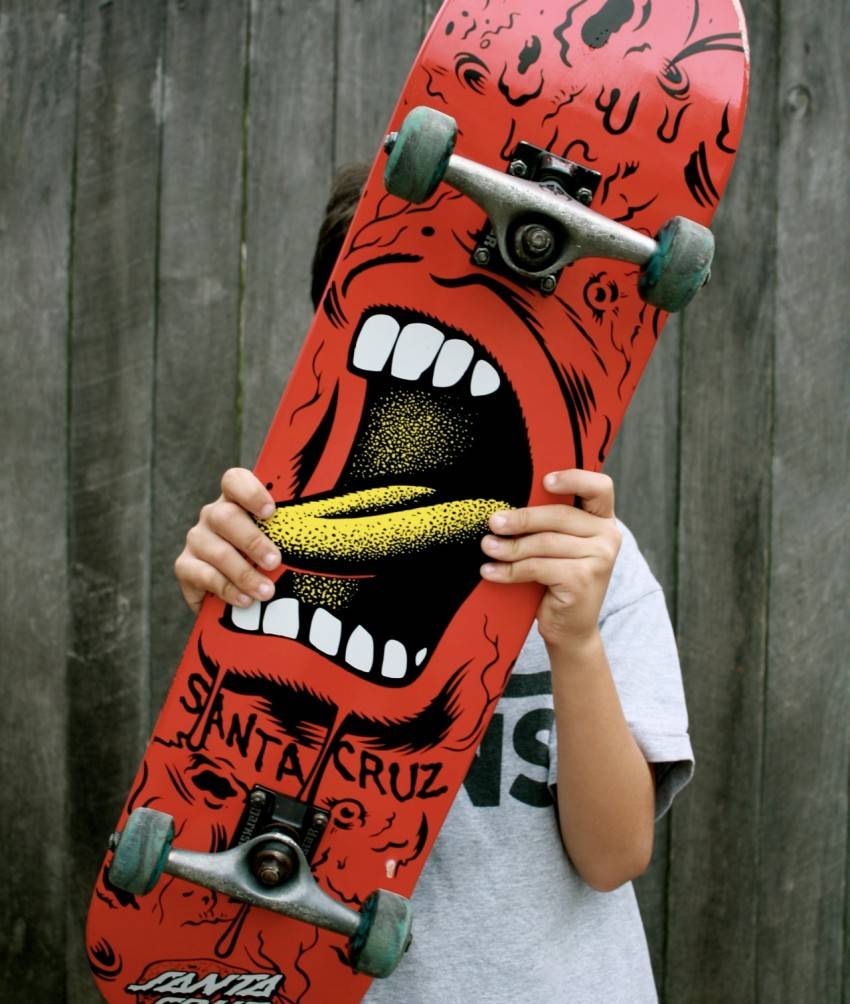 - Скейтборд: если на улице лето и хорошая погода, самое время научиться кататься на такой доске. Во многих парках установлены специальные места и горки, где дети и взрослые могут тренироваться и осваивать новые элементы. Для детей ростом 130–140 см и стандартным размером обуви подходит доска шириной 7 дюймов и длиной 28 дюймов. Если ребёнок высокий и размер ноги у него больше, чем у ровесников, тогда нужно взять доску шириной 8 дюймов и подлиннее.