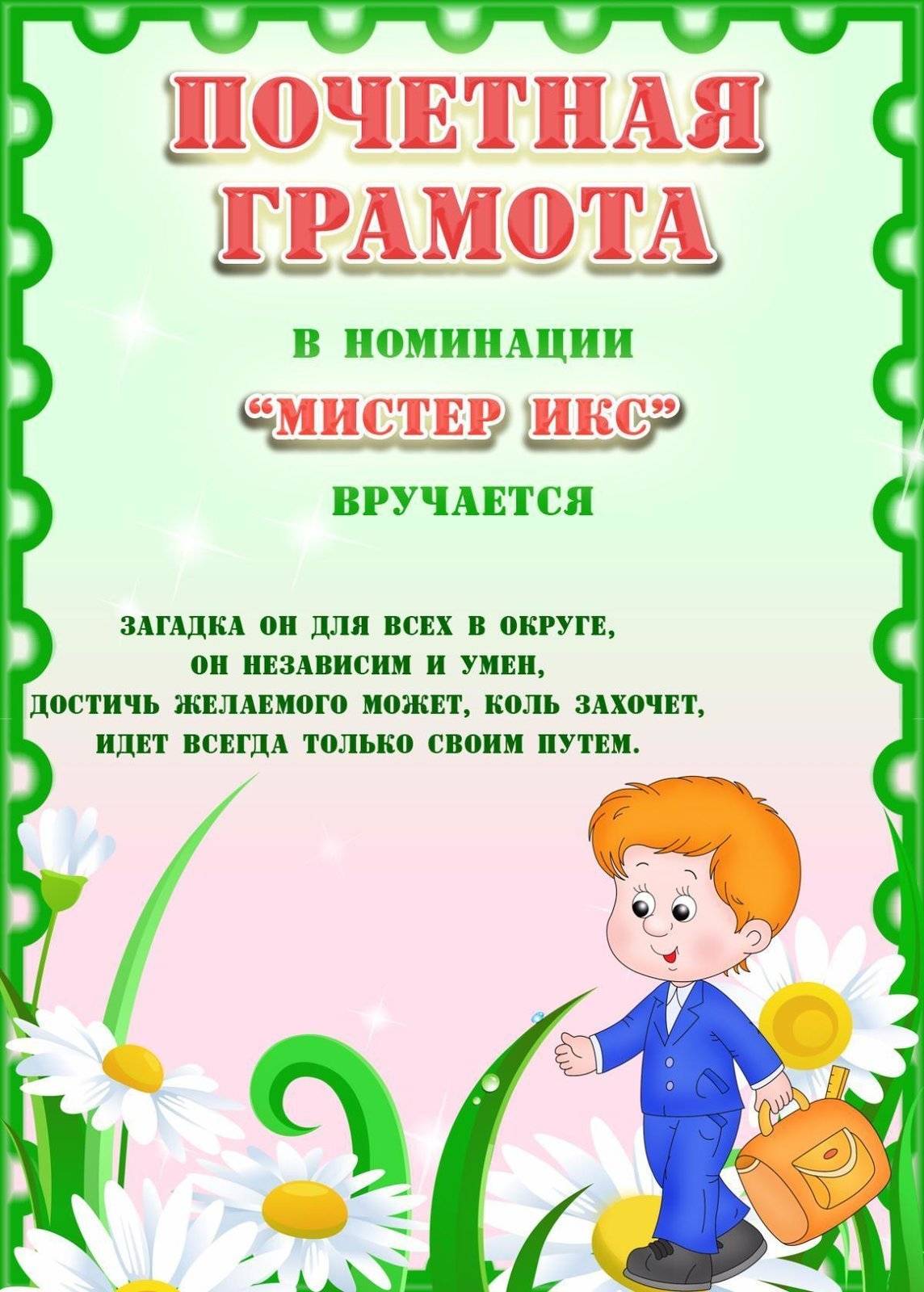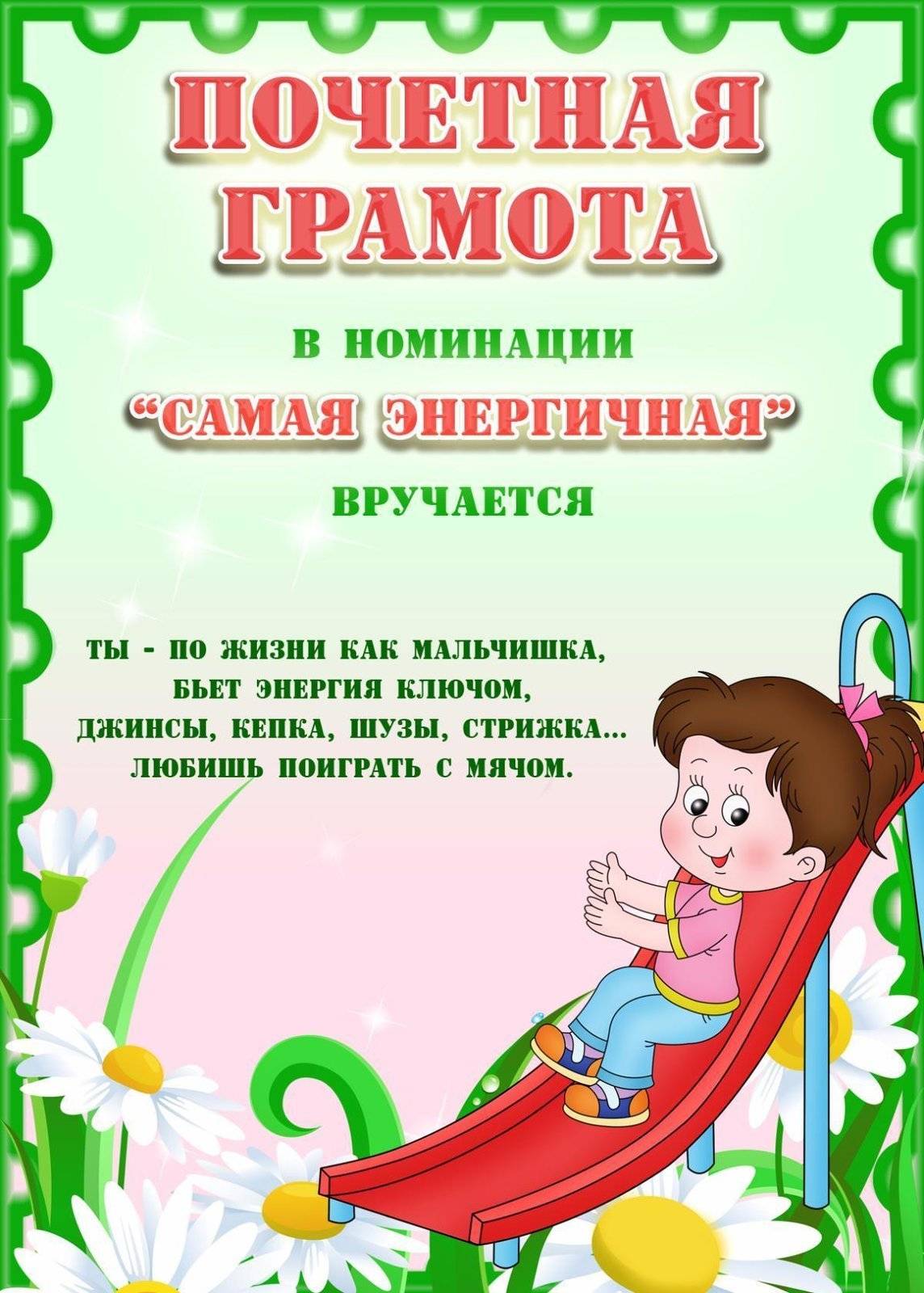 Выпускной в школе и в детском саду отличается только возрастной группой детей. В остальном, праздники схожи между собой: поздравительная часть, концерт, и куда же без номинаций? Шуточные грамоты и дипломы вы найдете ниже по тексту. Просто кликните по нужной картинке и распечатайте ее на цветном принтере.