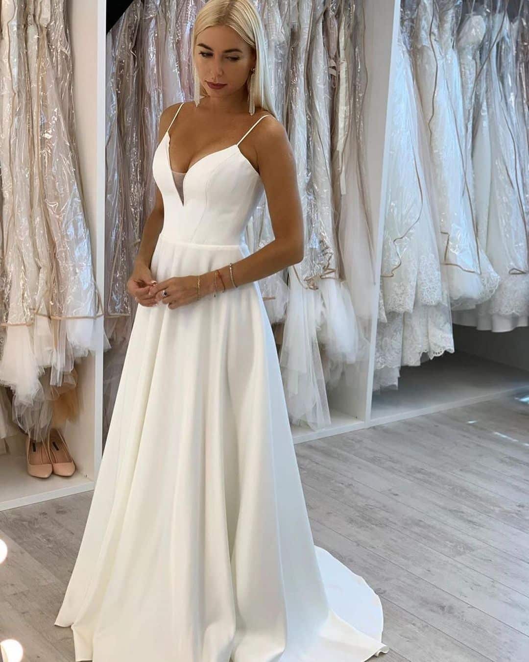Выглядят очень нежно и романтично, особенно актуальными в этом году являются тонкие бретельки.