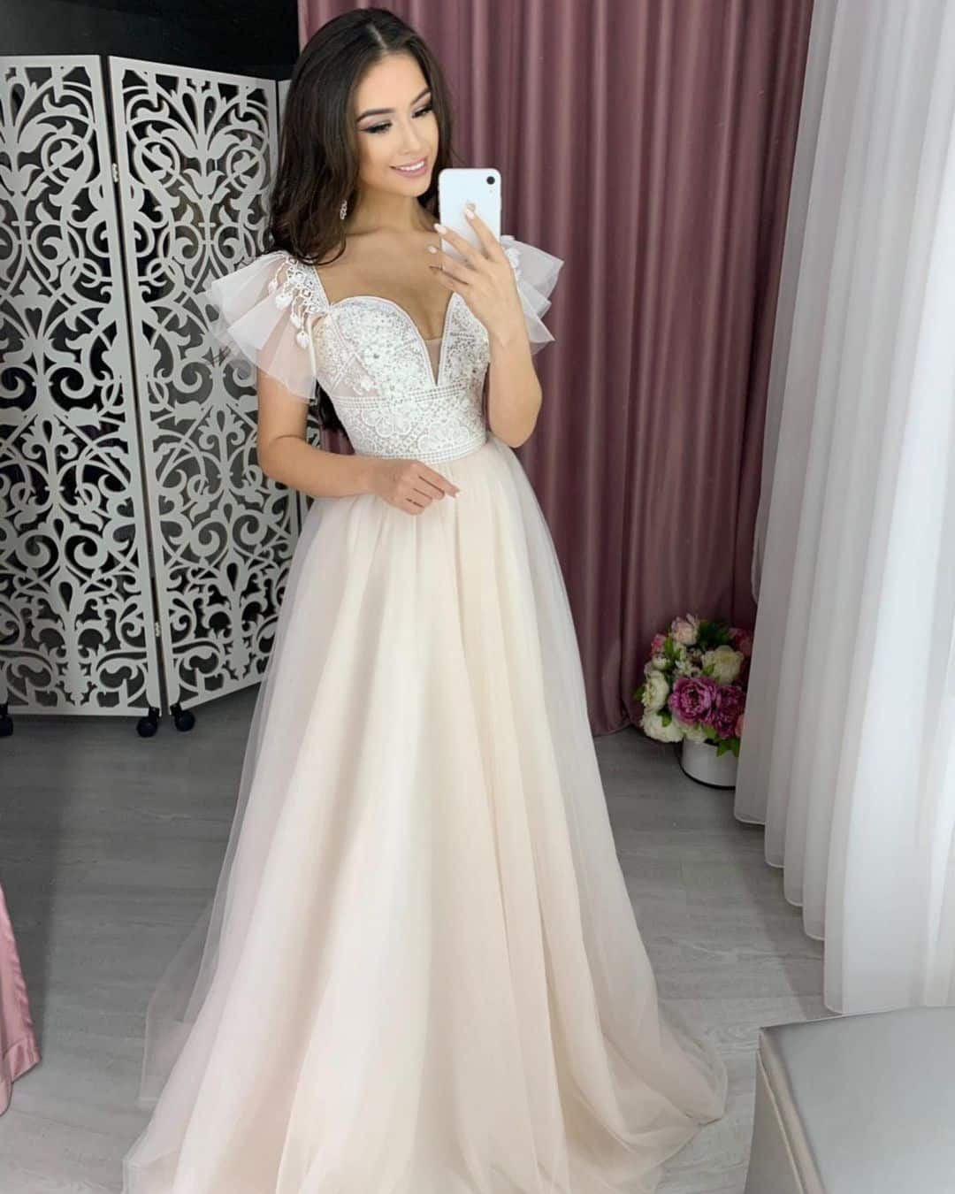 Разнообразие оттенков. Сегодня можно далеко уйти от белоснежного платья. Гораздо интереснее смотрятся кружевные модели нежно-розового, цвета шампанского, оттенка айвы, светло-золотистого. Холодному типажу внешности к лицу белое платье, а теплому со слегка загорелой кожей подойдут такие оттенки как слоновая кость, топленое молоко.