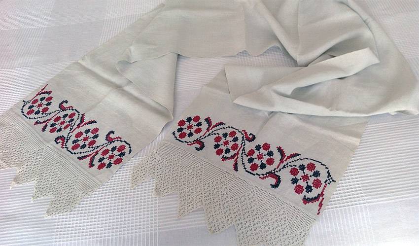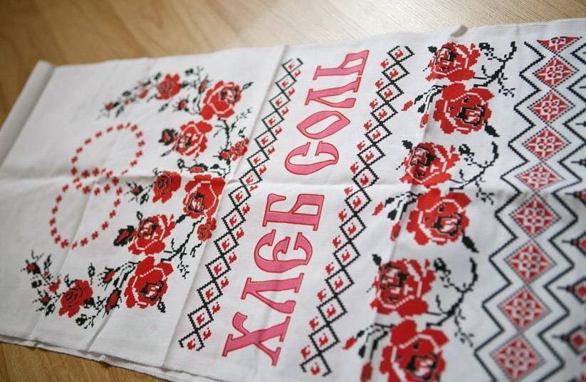 - Выбирайте универсальные рушники с положительным набором символов: цветы, кольца, крест.