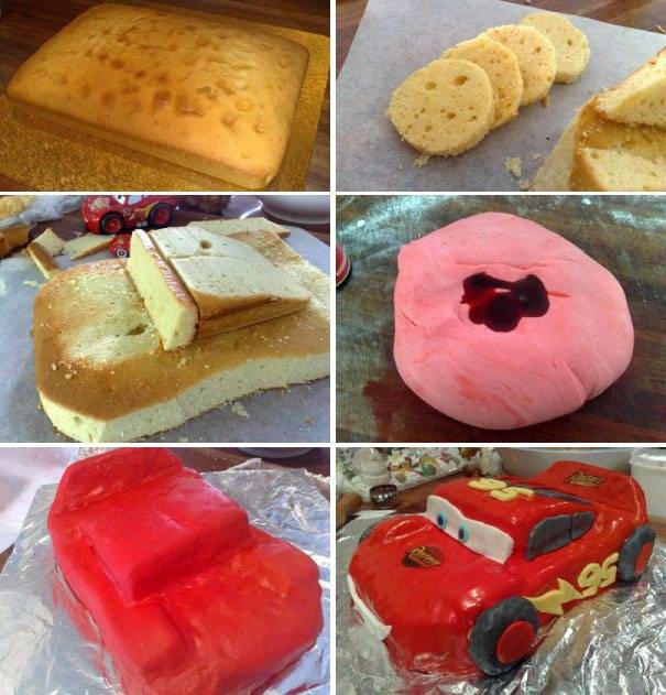 А еще можно самим сделать торт. Выпекаете коржи. Конструируете машинку, обрамляете цветной мастикой и ждете праздничного утра.