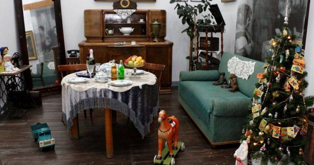 Для украшения используют старые игрушки, советскую мебель и семейные реликвии. Они создают атмосферу праздника.