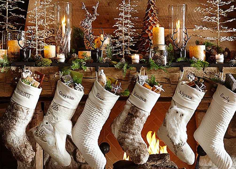 Для украшения камина подойдут гирлянды из хвои, дополненные свечами, цветами и тематическими фигурами. Дополнят обстановку носочки для подарков. Чтобы сделать фотозону завершенной, можно использовать стулья, журнальные столики и бутафорские подарки.