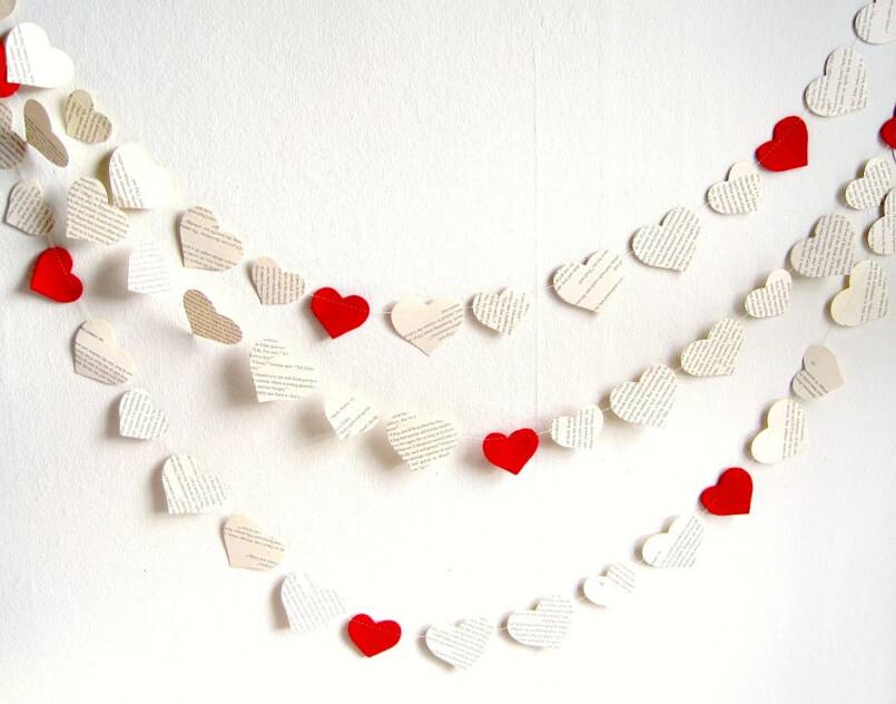 Для создания дома романтично-праздничной атмосферы на дверных ручках, люстрах, карнизах и шторах, одним словом, везде, где только можно, развешивают бумажные сердечки.