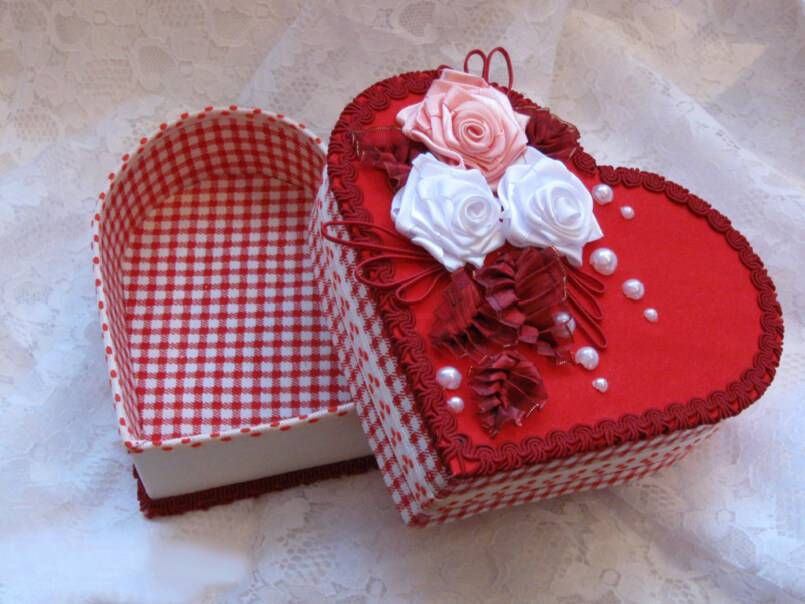 Ну и покажу вам как можно самостоятельно сделать коробочку в виде сердца с записками внутри (например, использовать слова по объяснению любви, за что вы любите свою вторую половинку или своих родственников).