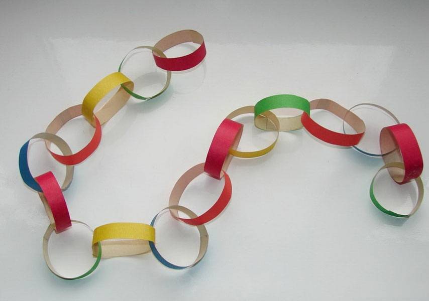 Как вариант, гирлянду можно изготовить из бумажных колец. Для этого нужно вырезать из бумажного листа несколько прямоугольников 1Х10 сантиметров, затем первый из них склеить по краям, образовав кольцо. Следующий прямоугольник продевается в него и снова склеивается. Получается подобие цепи. Длина бумажной гирлянды может быть какой угодно, это зависит от количества колечек, из которых она состоит. Внешнюю часть одного из крайних звеньев следует смазать клеем и прижать к нижней части основания фонаря. Столь простое украшение сделает бумажный фонарик еще более привлекательным.