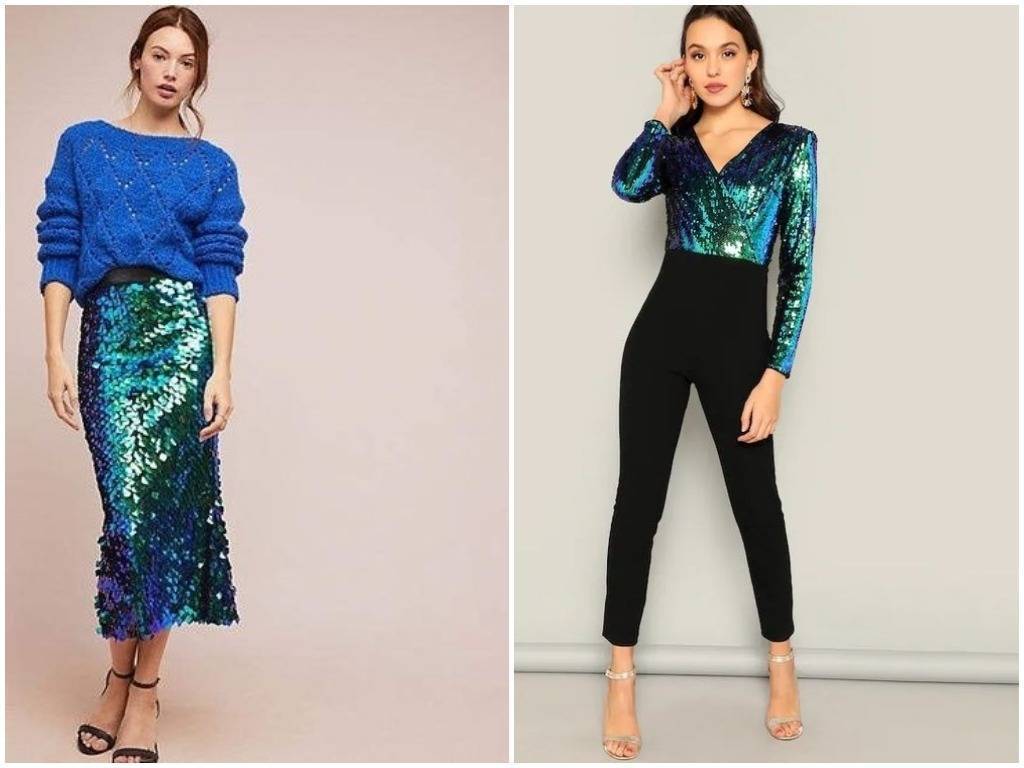 Очень празднично будут выглядеть топы из атласа, оформленные люрексом или же на тоненьких бретелях. С их помощью можно создать множество стильных lookов и порадовать капризный символ года. Стильно и нарядно будет смотреться топ с пайетками в сочетании с зауженными или свободными брюками, пышными юбками.