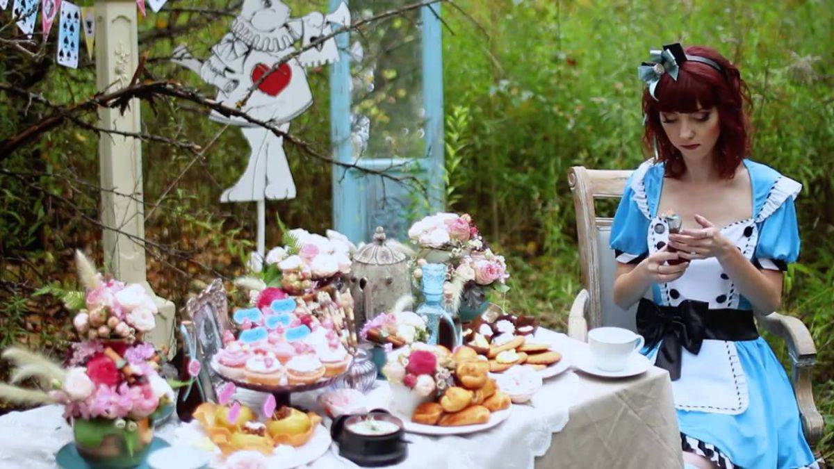 В Англии принято к чаю подавать бутерброды. Пусть на вашем свадебном столе будет множество различных канапе и закусок, легких деликатесов и всяких сладостей. По сюжету сказки подайте гостям пудинг, бараний бок, пироги и булочки. Здесь, кстати, тоже можно подшутить. Отметьте блюда табличками «Квази-черепаший суп», «Угощения от Шляпника» или «Запеканка из Бармаглота».