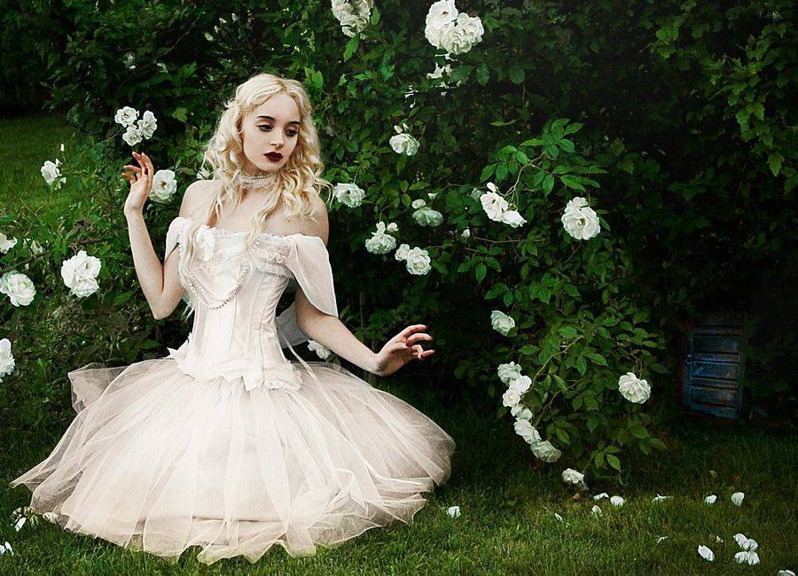 Менее востребованным, но от этого не менее привлекательным является образ Белой Королевы. За основу принято брать наряд Энн Хэтэуэй, однако встречаются и более вольные интерпретации.