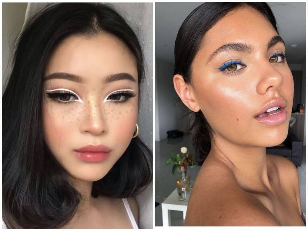 При этом тени могут быть матовыми или перламутровыми, в зависимости от повода. Мейкап можно дополнять стрелками чёрного, коричневого, серебристого и золотистого оттенка. Для дневного макияжа лучше избегать использования яркой подводки.