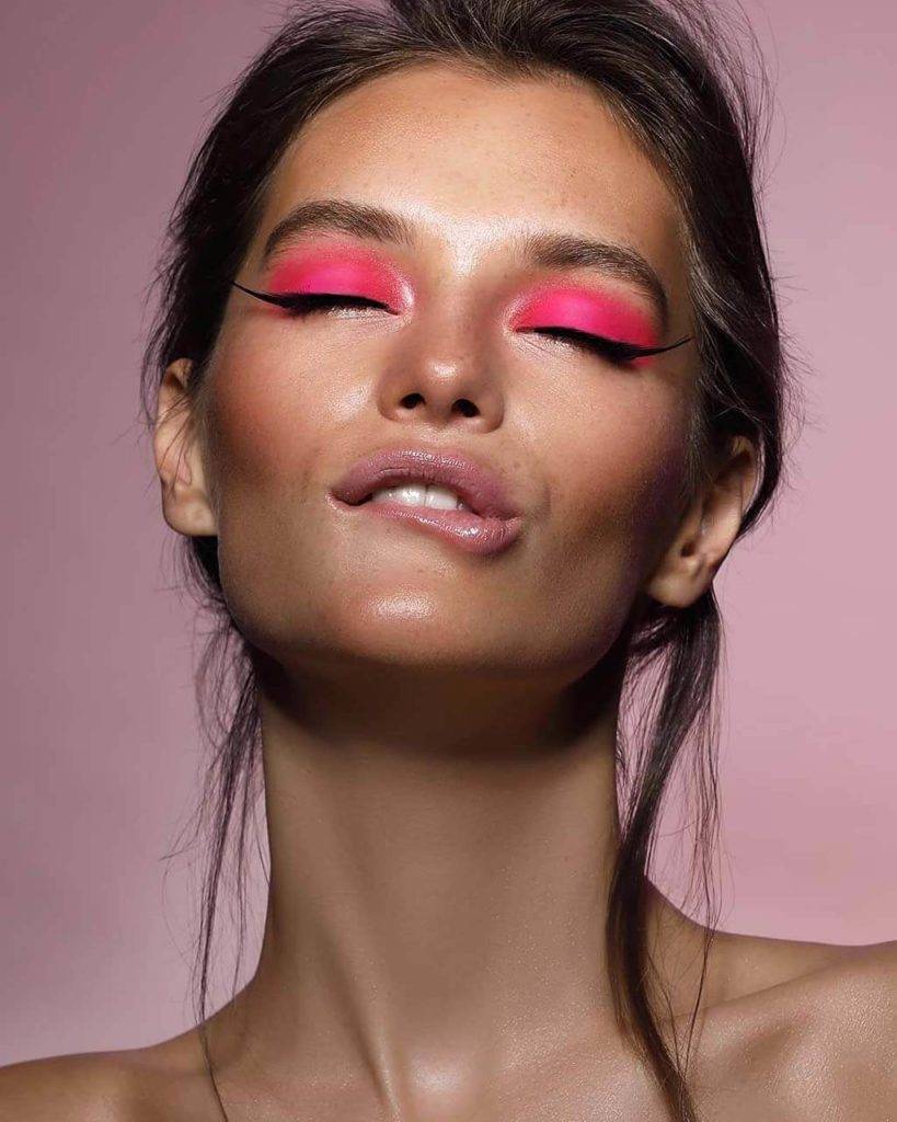 Темноглазым брюнеткам можно выбирать цвета более насыщенные и броские – золотистый, ярко-сиреневый, ярко-розовый.