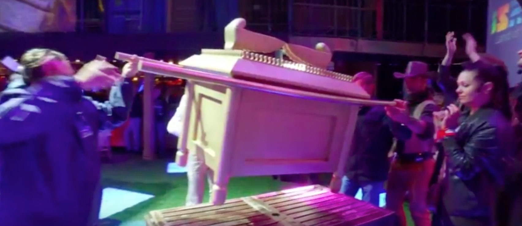 Ковчег Завета достаточно большой. Мы заказали копию из пенопласта и покрасили в золотой цвет. Индиана Джонс и команда выносили её в зал, смотрелось очень эффектно.