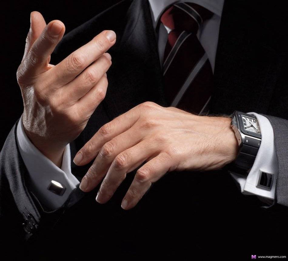 - Манжет рубашки должен выглядывать из рукава пиджака на 1,5 см. Идеально, когда на последнем нет «пузырей», складок, а полотно по всей его длине ровное
